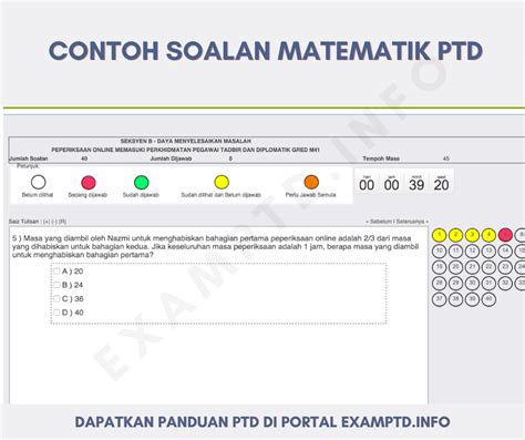 Panduan buat calon yang bakal menduduki peperiksaan pegawai tadbir dan diplomatik gred m41 . Download contoh soalan daya menyelesaikan masalah matematik ptd tahun 2014, 2015, 2016 & 2017 di sini. Berikut merupakan contoh soalan matematik pegawai tadbir diplomatik m41 sebenar yang dikeluarkan oleh portal spa malaysia. Nak tahu topik yang mana?